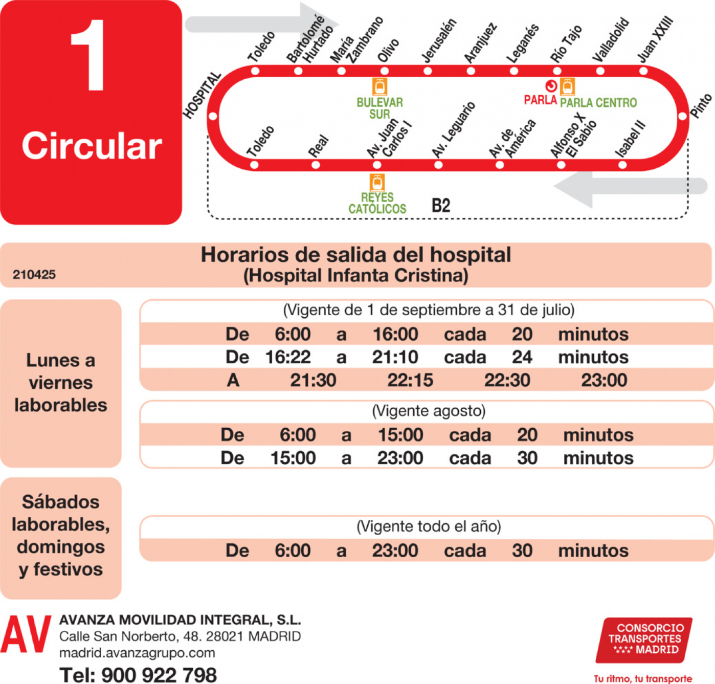 Información y horarios: www.redtransporte.com